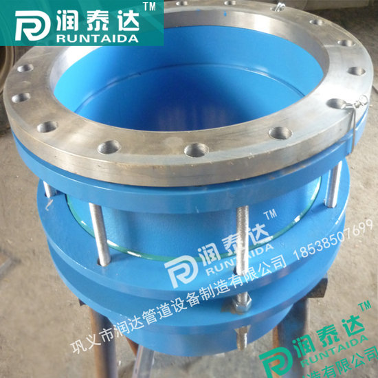 4.限位伸縮接頭,在松套伸縮接頭原有性能的基礎上增設限位裝置,在最大伸縮量處用雙螺母鎖定。管道在允許的伸縮量中可以自由伸縮,一旦超過其最大伸縮量就起到限位,確保管道的安全運行,特別適用于有振動或有一定斜度及拐彎的管路.