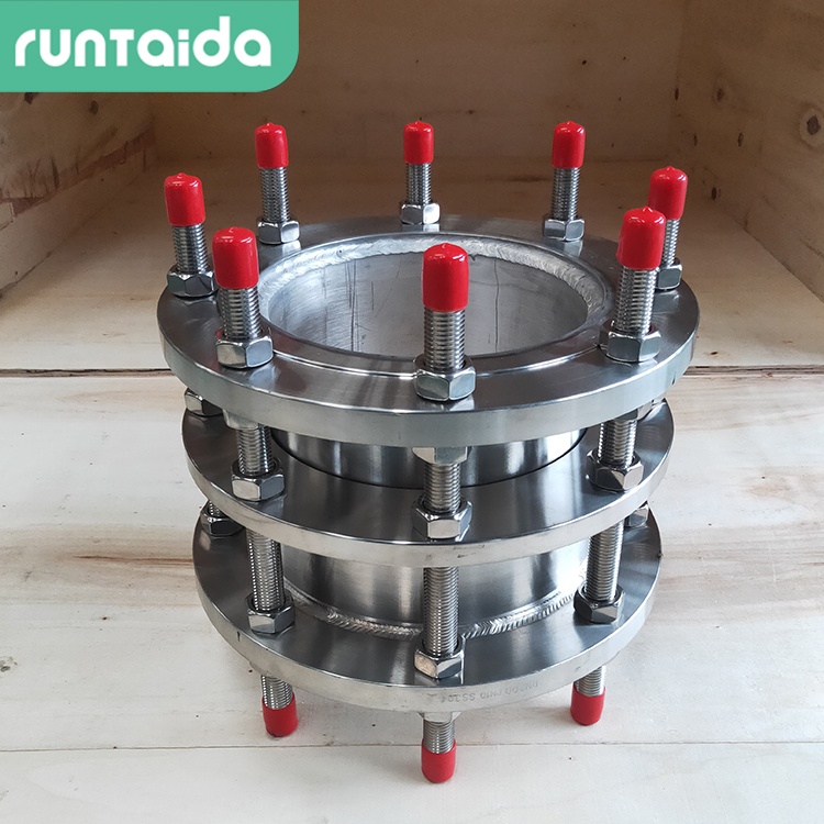 雙法蘭傳力接頭是依照GB12465-2007規范生產制造的,經常出現的材料有:碳素鋼,球墨鑄件和不銹鋼板三種。傳力接頭有多種多樣,在其中單法蘭傳力接頭,可拆式傳力接頭和雙法蘭傳力接頭更為常見,單法蘭傳力接頭的構造是在法蘭活套法蘭賠償連接頭的基本上加設法蘭短管及傳力擠出機螺桿而成,它是剛性連接的,能夠 傳送樞軸力,進而維護閘閥、泵等機器設備。